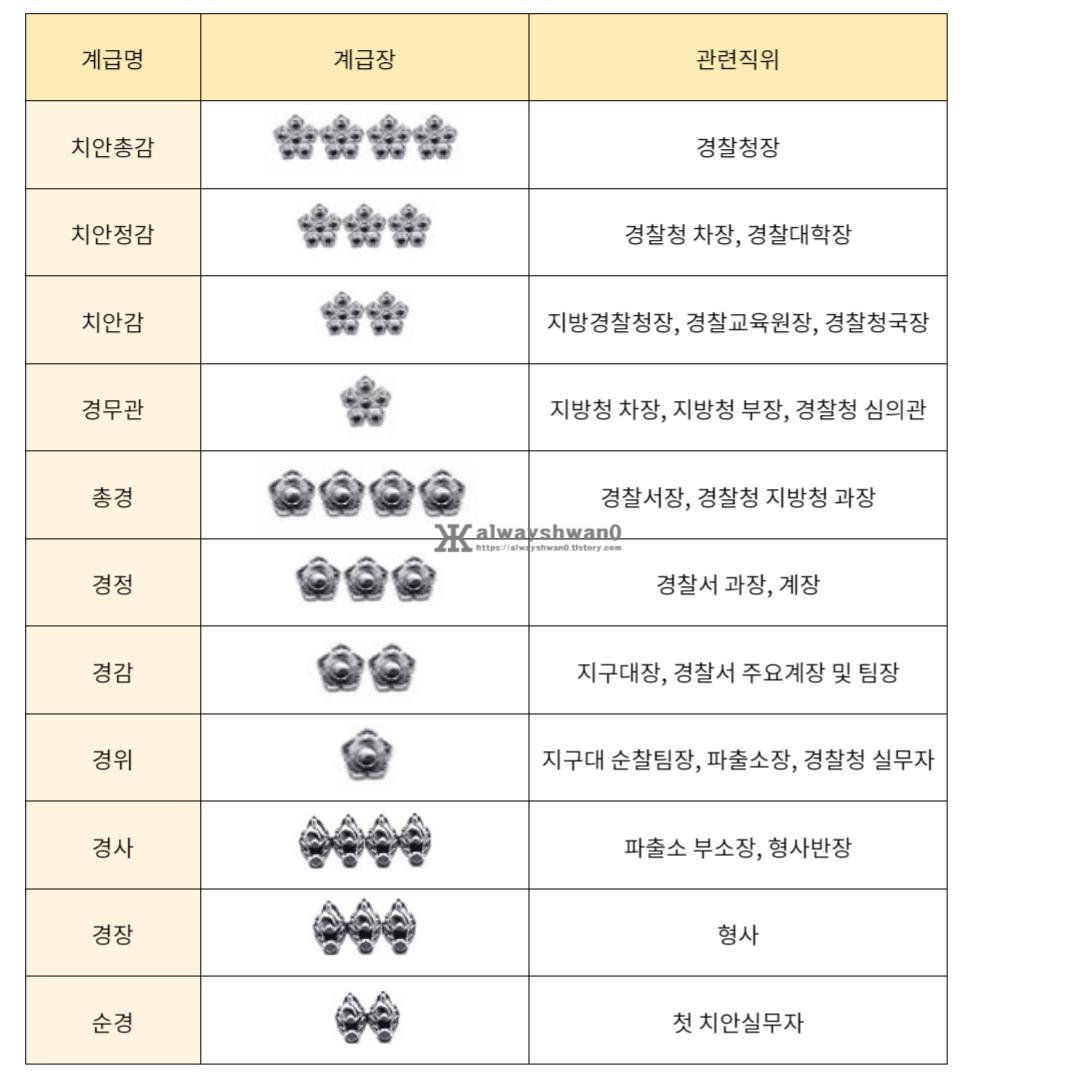 경찰 계급은 위에 표에서 보시는 것처럼